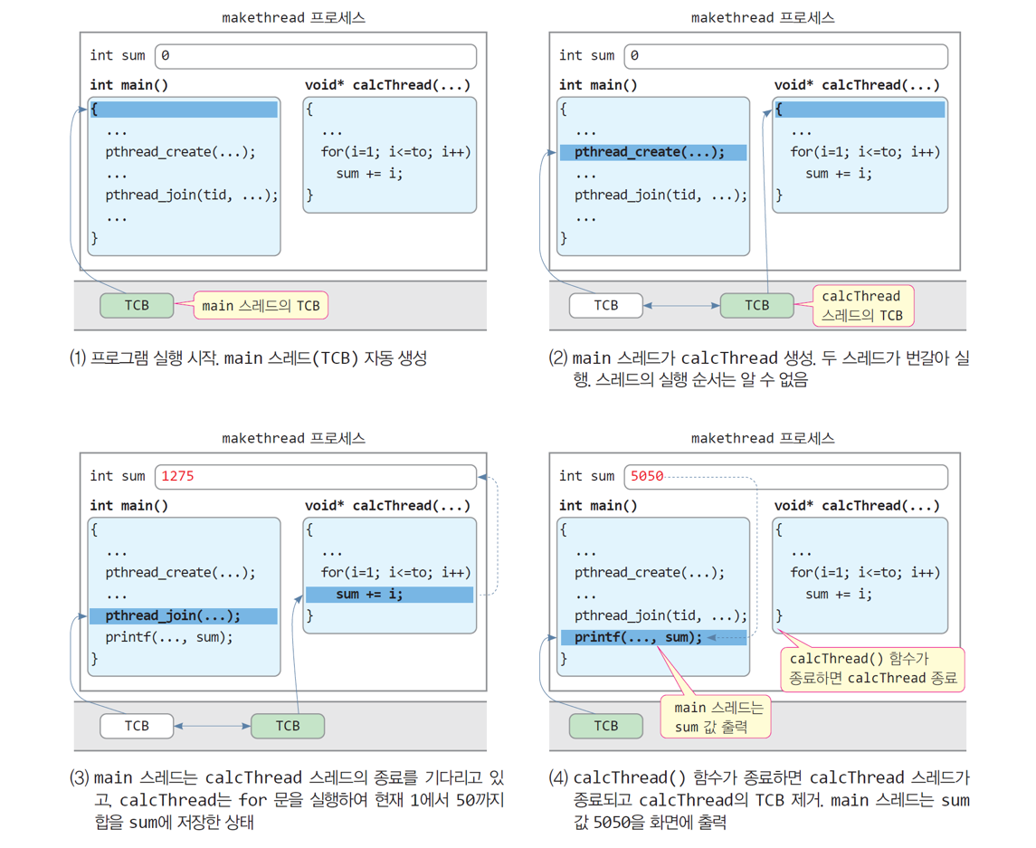 pthread_join(tid, NULL); // tid 번호의 스레드 종료를 기다림